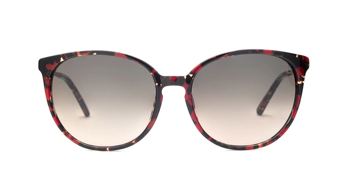 Rounded sunglasses for women, large-sized. Frame made of Mazzucchelli natural acetates in a combination of red and black Havana on the front and earpieces, with a metal temple. Gray-tinted lenses made with Barberini pure mineral crystal. One-size-fits-all. The name of this model refers to Avenida Icària in Barcelona, located in the Vila Olímpica area, facing the sea. This was once a rundown industrial zone of the Poblenou neighborhood called Icària in honor of the utopian socialists of yesteryear. This is where the Olympic village was built to house the athletes who participated in the Barcelona Olympic Games of 1992, which completely rehabilitated the area.
