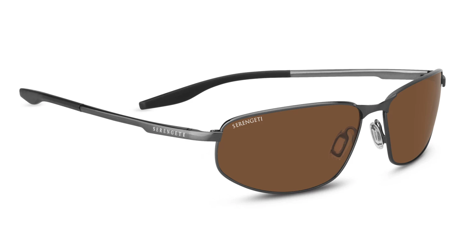Extreme comfort thanks to its adjustable nose-pads and rubber temple tips, Matera is defined by a dramatic and sporty design reinforced in its brushed-metal finish.