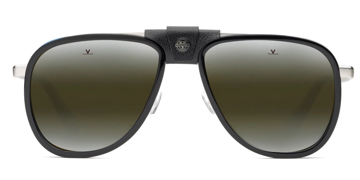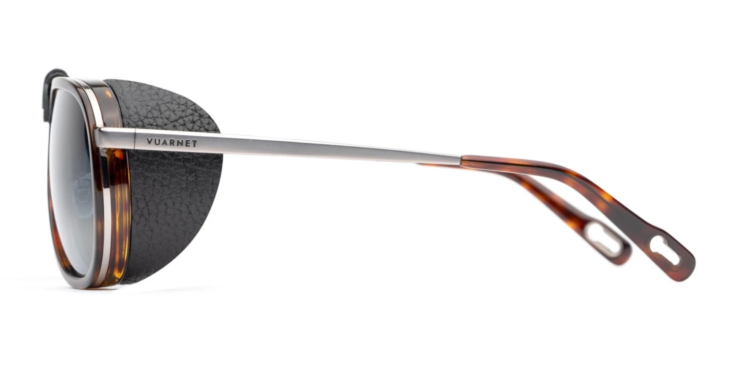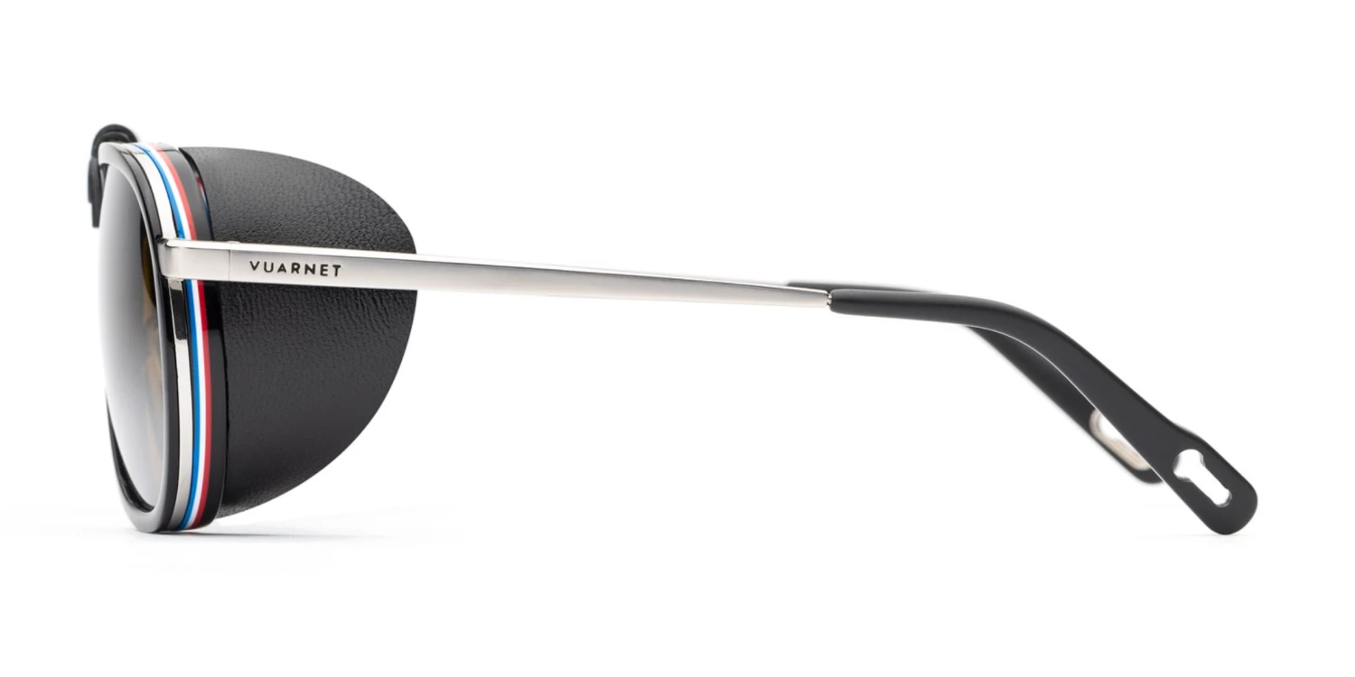 The new Vuarnet Glacier is a mountain icon. Featuring a pilot lens shape, removable side shields and nose bridge, the Glacier protects your eyes from intense sunlight conditions even on the highest peaks. The frame is made of titanium, beta-titanium and bio-acetate, and the accessories are crafted from natural or vegan leather.