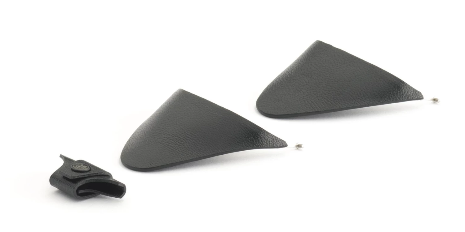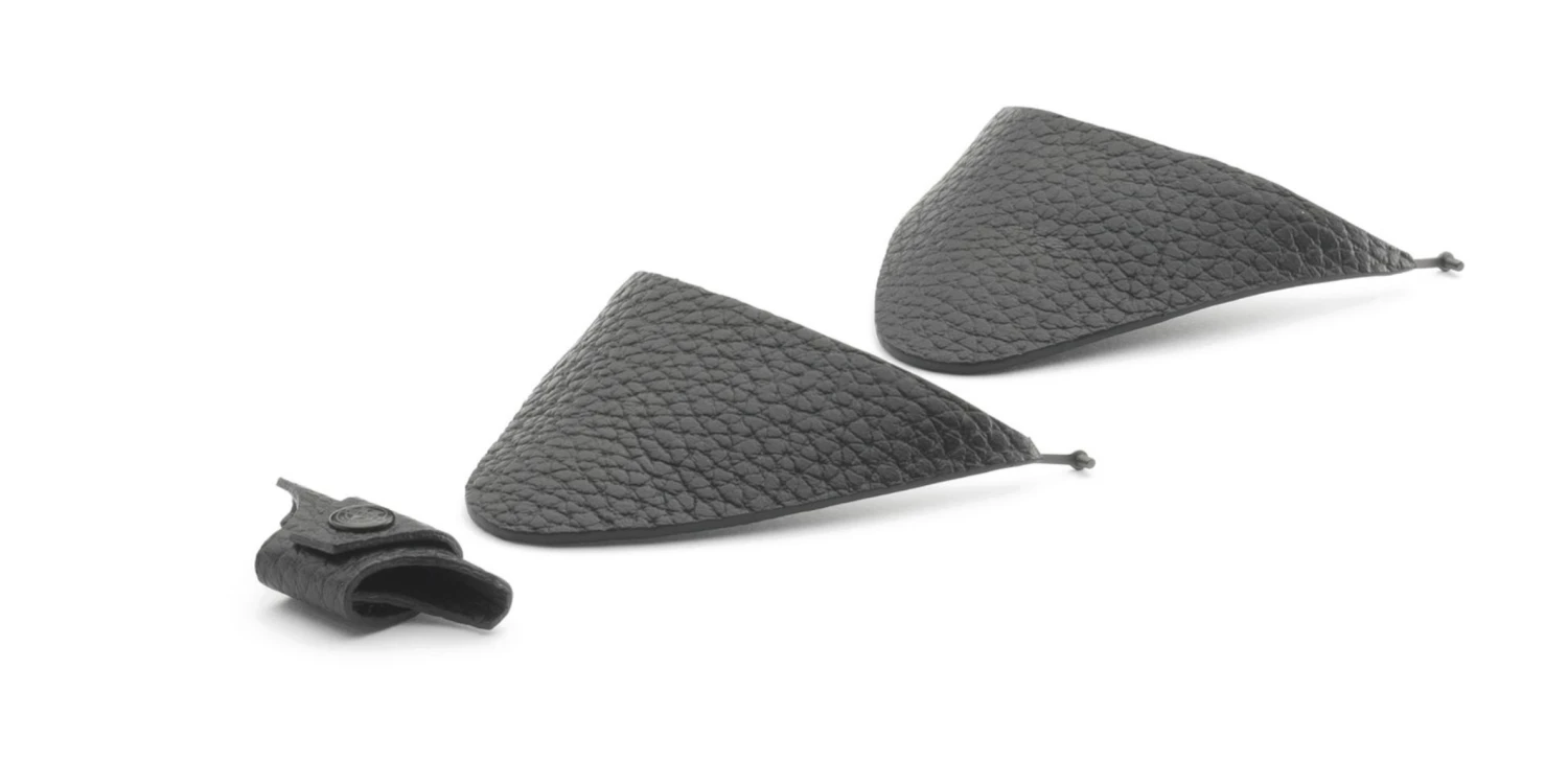 - Removable side shields and nose in vegan & natural leather