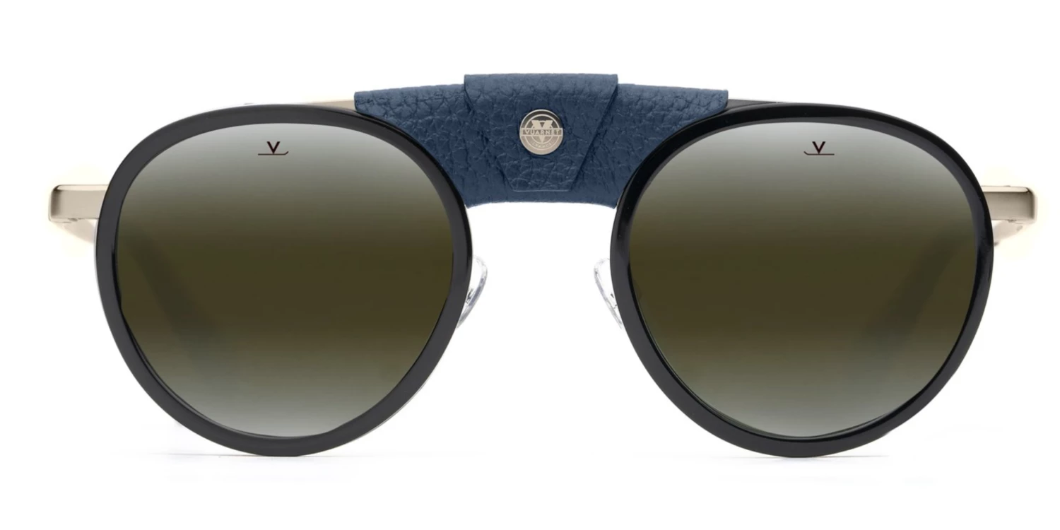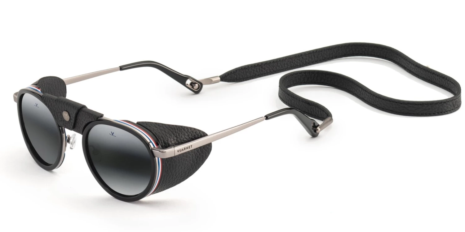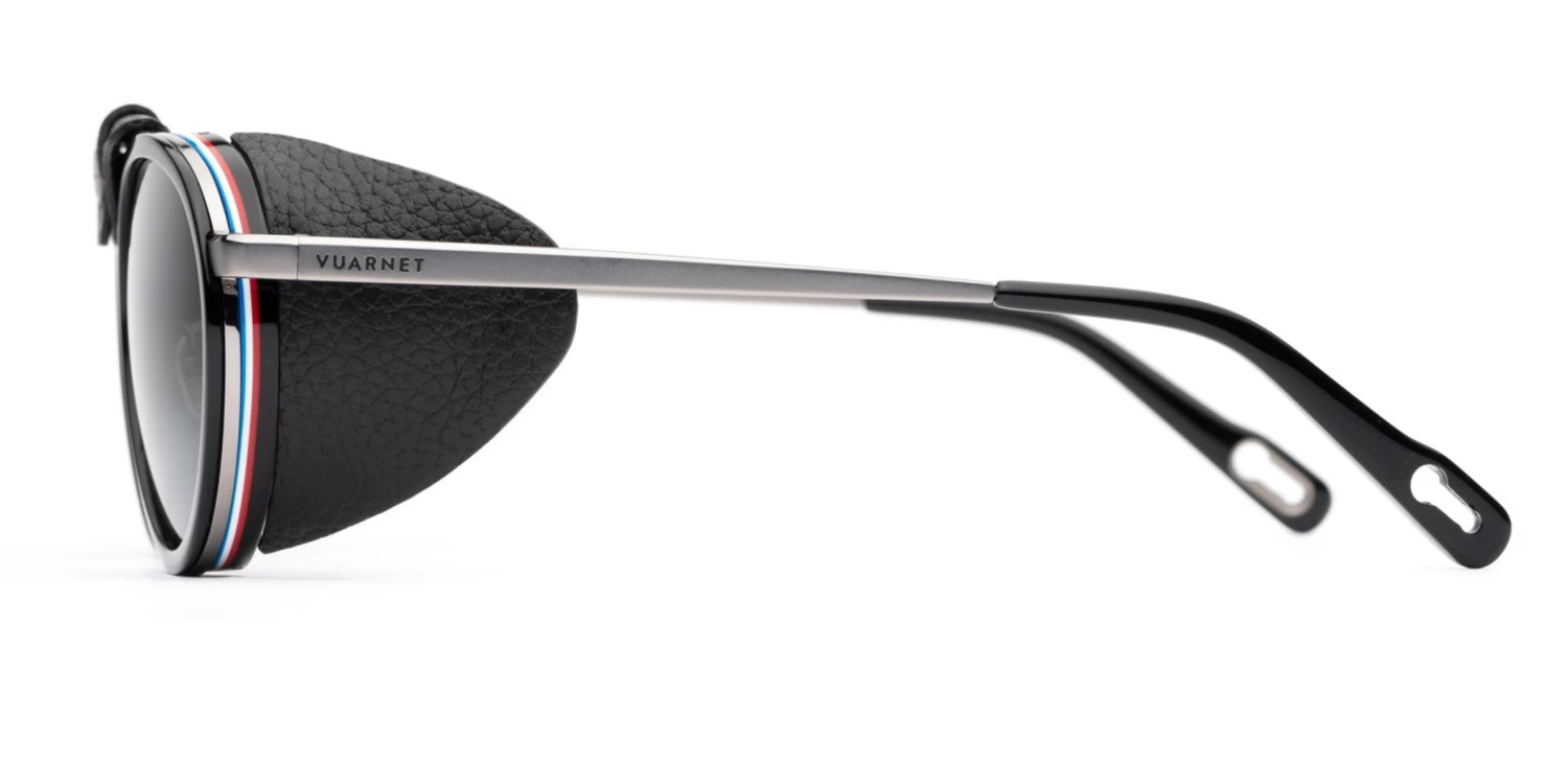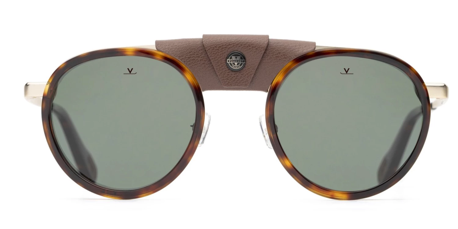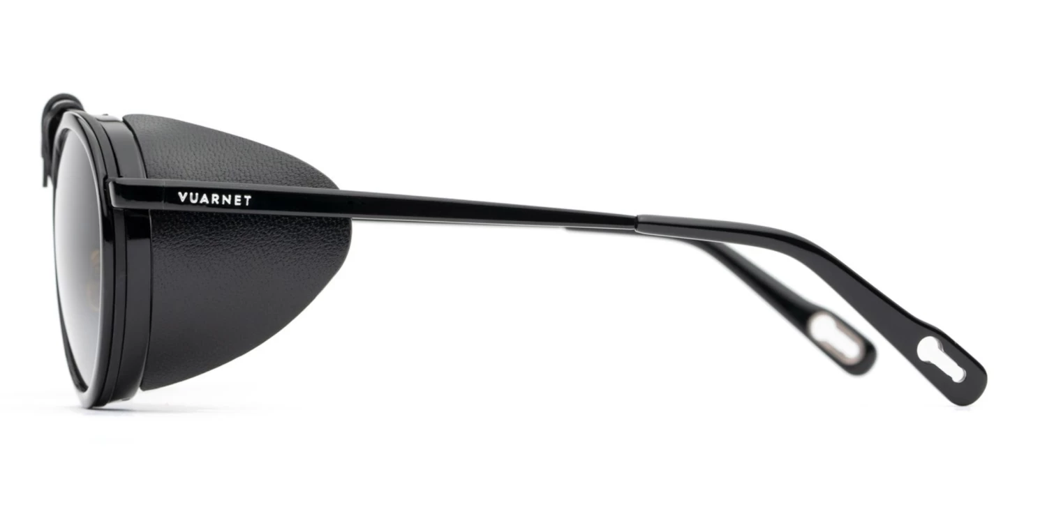 The new Vuarnet Glacier is a mountain icon. With its round shape, side shells and removable nose guard, the Glacier provides 100% protection from the intense sun on the highest peaks. The Frame is made of titanium, beta-titanium and bio-acetate, and the accessories are made of natural or vegan leather.