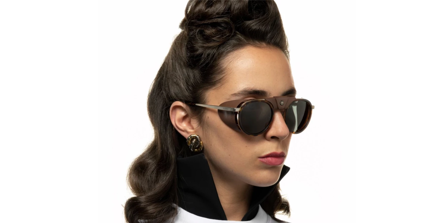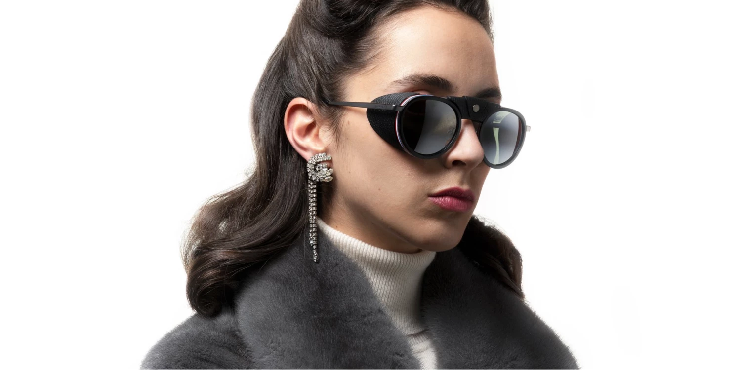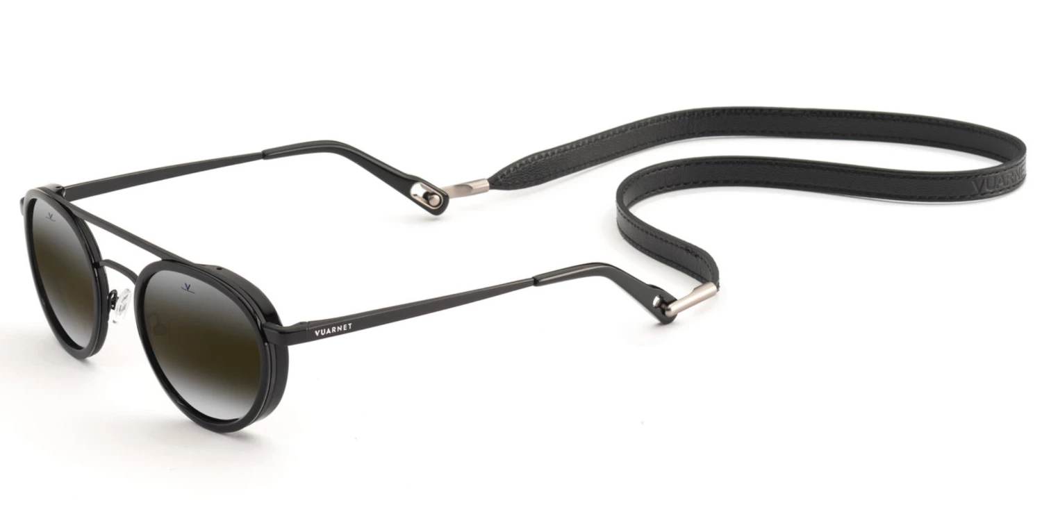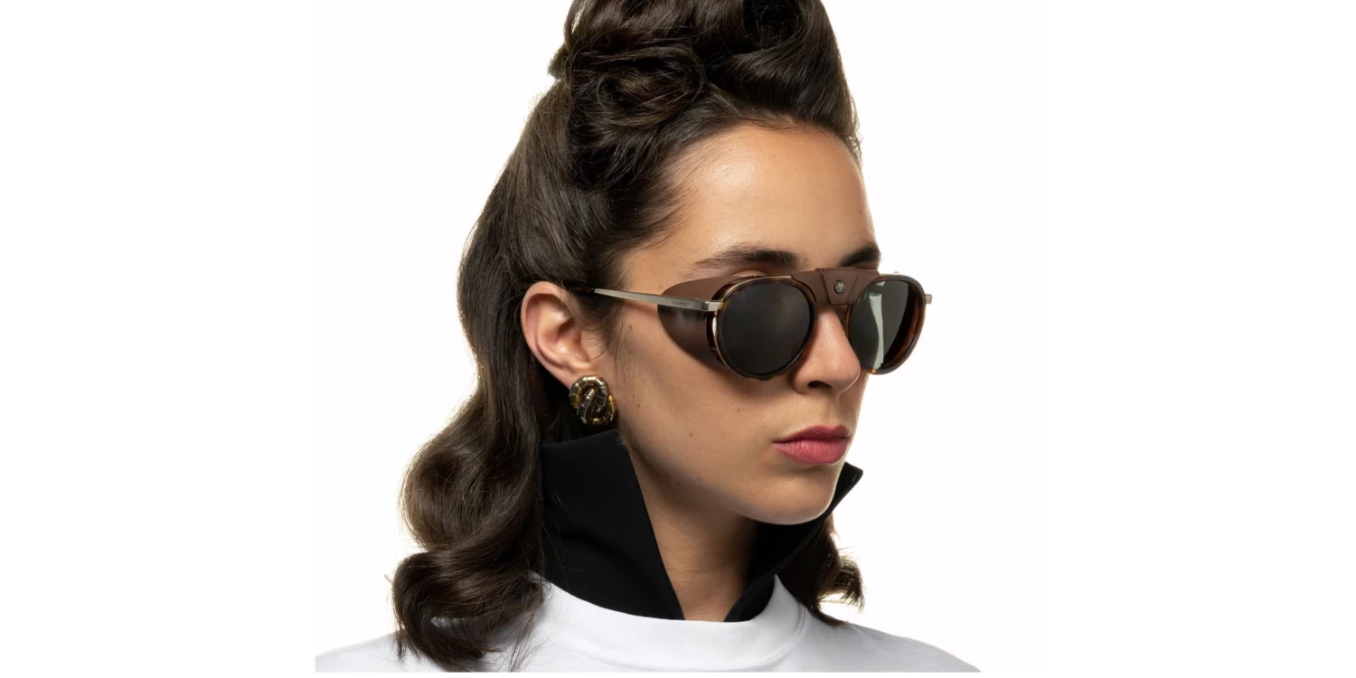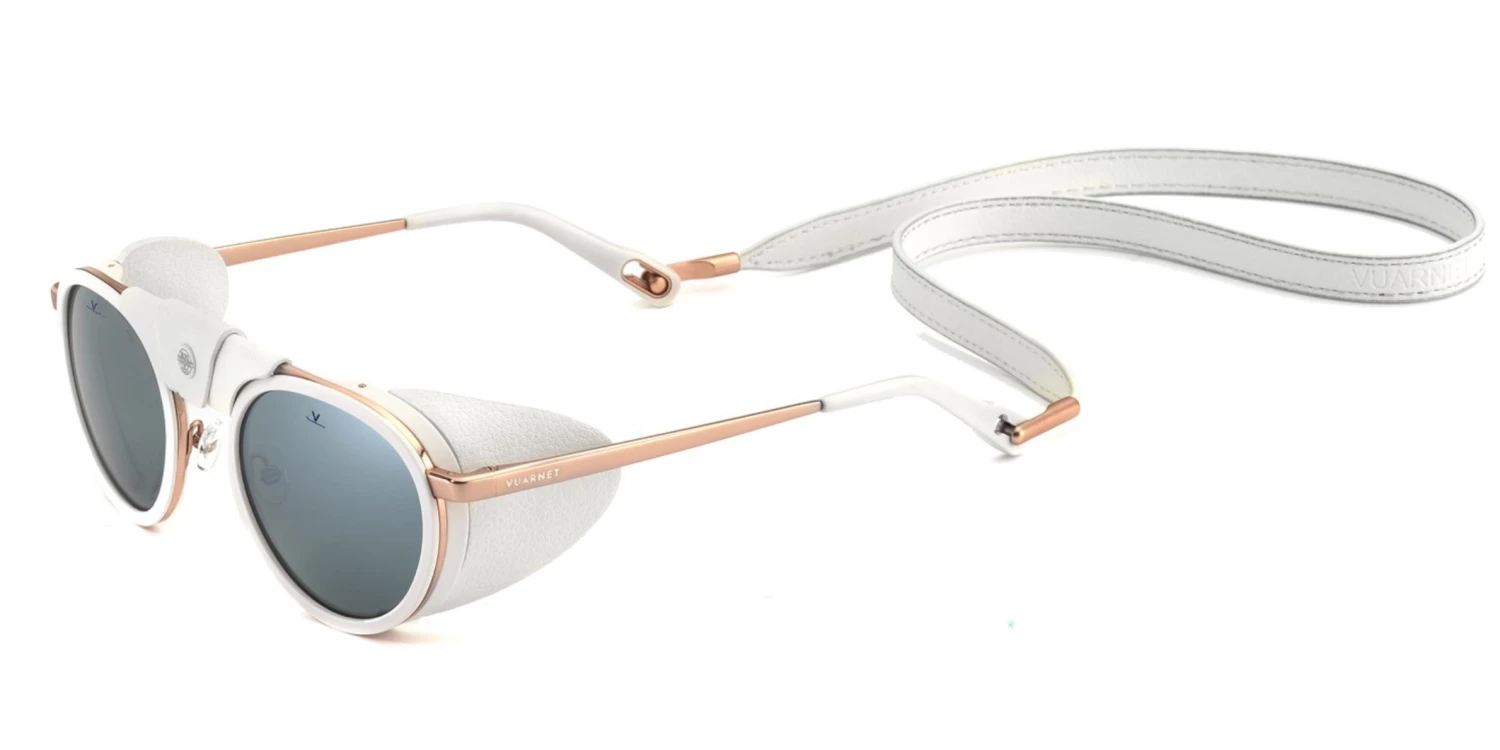 The new Vuarnet Glacier is a mountain icon. With its round shape, side shells and removable nose guard, the Glacier provides 100% protection from the intense sun on the highest peaks. The Frame is made of titanium, beta-titanium and bio-acetate, and the accessories are made of natural or vegan leather.