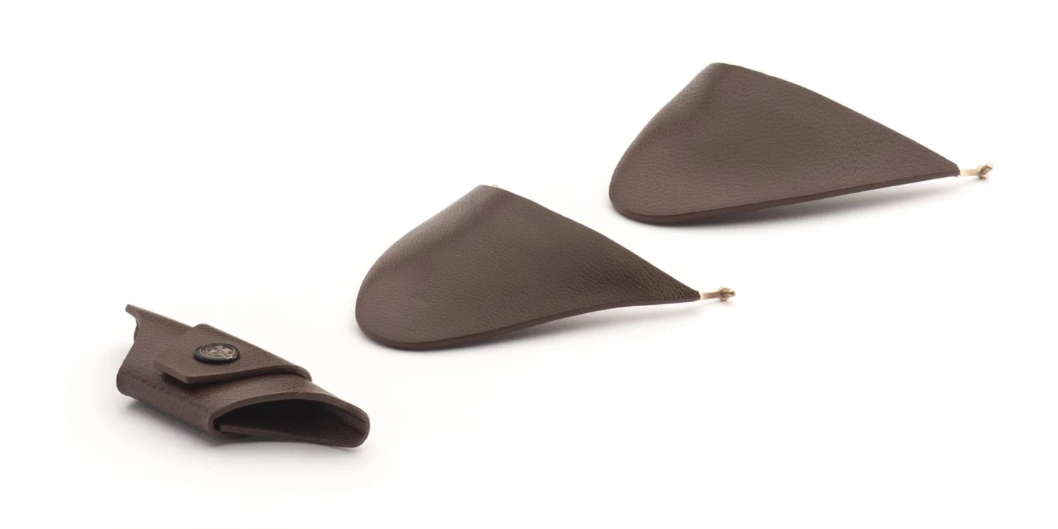 - Adjustable temple tips with removable leather strap in vegan & natural leather